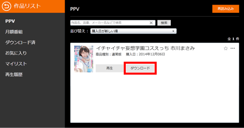 DUGAで購入した作品は、DUGA Player 内の作品リストに自動的に追加されます。