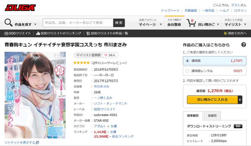 すべてのお客様の多様なニーズにお応えできるよう、アダルト動画のラインナップには特に力を入れているようです。メジャーメーカーの最新作はもちろんのこと、他ではなかなか見られないマニアックなニッチ作品まで、幅広いジャンルの動画を豊富に取りそろえているのがDUGAの強みです。