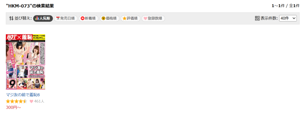 するとメーカーの品番と完全一致する作品が画面に表示されます。
