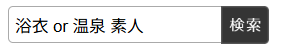 たとえば、「浴衣」または「温泉」のどちらかを含む「素人」作品を検索するには、次のように入力します。