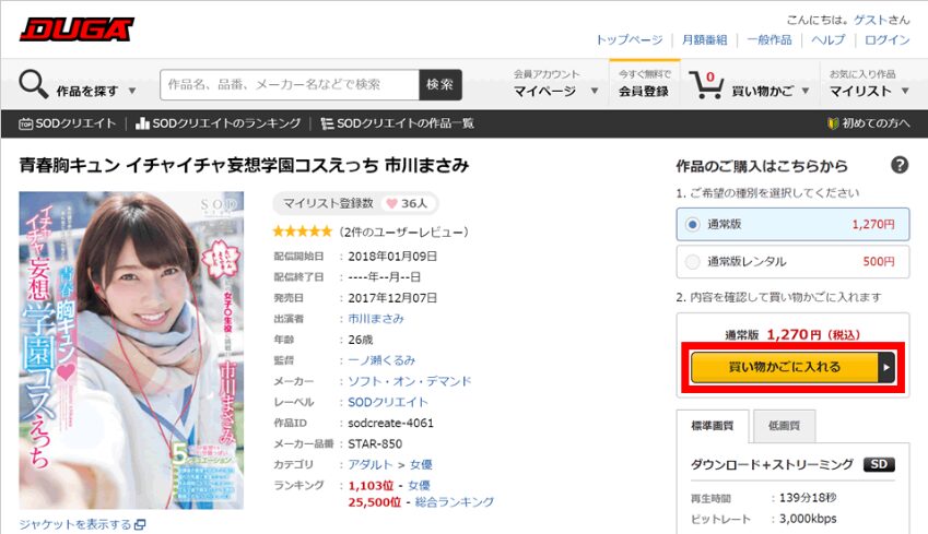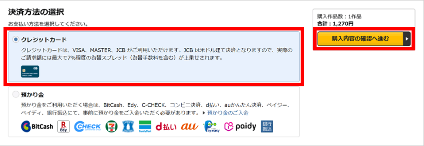 (ここではクレジットカードによる購入手順をご説明します。預り金による購入手順はDUGAのウエブサイトでご確認してください。)
